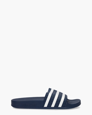 De Adilette werd in 1972 geĆ ntroduceerd en is sindsdien uitgegroeid tot de meest populaire Adidas-slipper ooit. Deze lichtgewicht Adilette 288022 Adidas Originals slides voor dames zijn gemaakt van duurzaam synthetisch materiaal en voorzien van een voorgevormd comfy voetbed. De loopzool met logo heeft een wafelpatroon voor goede grip. Kleur: donkerblauw/wit. (Adi Blue/ White/ Adi Blue) Dit model valt klein uit.