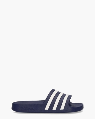 De Adilette werd in 1972 geĆ ntroduceerd en is sindsdien uitgegroeid tot de meest populaire Adidas-slipper ooit. Deze donkerblauwe/witte lichtgewicht Adilette Aqua F35542 Adidas Originals slides voor dames zijn gemaakt van synthetisch materiaal en voorzien van een voorgevormd zacht Cloudfoam voetbed. De iconische Adidas 3-Stripes zijn zichtbaar op de wreefb&. De loopzool met logo heeft een wafelpatroon dat zorgt voor een goede grip. Kleur: donkerblauw/wit. (Dark Blue/ Cloud White/ Dark Blue)