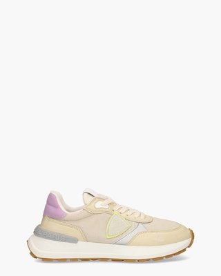 Sneakers voor dames Antibes Mondial ATLD-WY06 van het Franse sneakerlabel Philippe Model. Dit supertoffe model heeft een upper van vintage gebrushed imitatieleer, nylon, suède- effect nylon en mesh in ecru. Het lila doorgestikte hielstuk en de lichtgrijze rubberen stabilizer met merklogo zijn coole details. De off-white/gele badge met merkembleem is kenmerkend voor het label. De binnenkant is van leer en badstof gemaakt en voorzien van een uitneembaar voetbed. Opvallend is ook de 3, 5 cm hoge witte/gummy EVA kartelzool die bovendien lichtgewicht is. Off-white veters en branding op de tong maken de 'made with care in Italy' sneaks compleet. Kleur: ecru/multi.