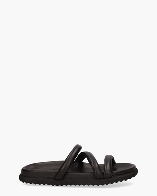 Slippers voor dames Candy Pop 58158-01-900 van het merk VIA VAI. Deze toffe slides hebben een upper van zwart leer. De drie banden over de wreef zijn puffy en voelen daardoor lekker zacht aan. Het comfortabele voorgevormde voetbed is ook in leer uitgevoerd. De zwarte lichtgewicht EVA-zool is van rubber gemaakt en is circa 2, 5 cm dik. Kleur: zwart. (Black)