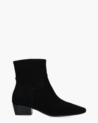Less is more met de zwarte Carabella dames enkelboots van Di Lauro. De strakke lijnen, spitse leest en het luxe suède maken van deze enkellaars een tijdloze favoriet. Binnenin zorgt de combinatie van een leren voering en vast voetbed voor optimaal draagplezier, terwijl de hak van 4 cm en de rubberen zool elke stap ondersteunen. De rits aan de binnenzijde en schachthoogte van 16 cm maken het geheel functioneel én stijlvol. Combineer ze met een rechte pantalon of midi-jurk voor een elegante city look. Kleur: zwart. (Black)
