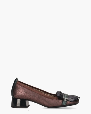 Loafers voor dames CHI243668 van het Spaanse merk Hispanitas. Dit model op een carréleest heeft een bovenzijde van gestructureerd leer in aubergine, groen en blauw met een subtiele metallic finish. De binnenkant en het vaste gel-voetbed zijn van microfiber en leer gemaakt. De belijning is in aubergine stretchstof met sierstiksels uitgevoerd. De farnjes met zilveren logoriempje op de wreef en de blokhak van circa 3, 5 cm maken de schoenen helemaal af. Op de rubberen zool loop je tot slot comfortabel. Kleur: multi. Bij deze loafers is een bijpassend Hispanitas handtasje BI243538 () verkrijgbaar.