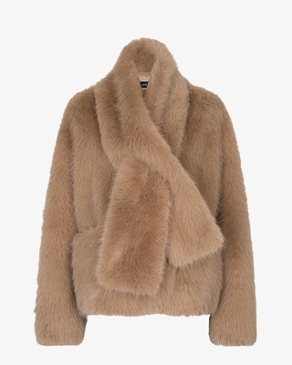 De Ibana Cierra coat voor dames is dé jas voor wie houdt van comfort met een vleugje retro glamour. Gemaakt van rijk cognackleurig faux fur en volledig gevoerd, voelt de jas heerlijk warm aan. De afneembare sjaalkraag maakt het model extra veelzijdig, terwijl de gouden knopen zorgen voor een stijlvolle finishing touch. Samenstelling: 100% polyester. Kleur: cognac. (Taupe) Onderhoud: • Alleen chemisch reinigen.