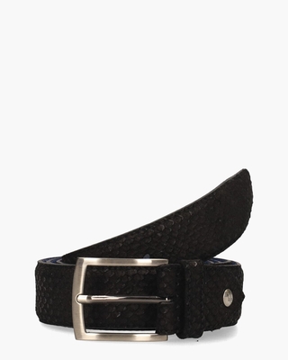 Herenriem De Belter 32.79/CFM-10083-10-03 van het Nederlandse merk Floris van Bommel is uitgevoerd in zwart suède met een opvallend reliëf. De zilverkleurige, rechthoekige gesp geeft de riem een tijdloze uitstraling, terwijl de binnenkant van glad leer voor extra comfort zorgt. Met een breedte van 3, 5 cm biedt deze riem een perfecte balans tussen stijl en functionaliteit. Kleur: zwart. (Black) De riem heeft een standaardlengte van 115 cm en is eenvoudig op maat te maken dankzij het handige schroefsysteem van Floris van Bommel. Maak jouw outfit helemaal af met de bijpassende FVB veterschoenen De Stapper 06.17 ().