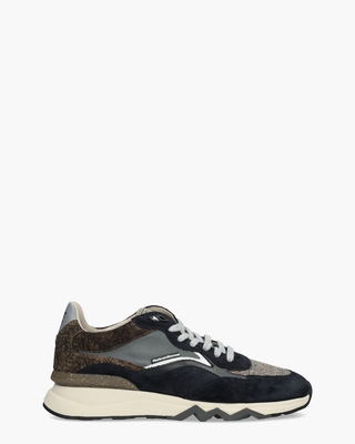 Met zijn verfijnde mix van materialen en kleuren valt de Floris van Bommel De Zager 05.25/SFM-10178-41-01 herensneaker meteen op. Het bovenwerk combineert luxe materialen zoals leer, suède, mesh en tweedstof in donkerblauw, verschillende bruintinten, grijs, wit en zwart. De leren binnenzijde en het uitneembare voetbed zorgen voor comfort bij elke stap. De slijtvaste TPU-runningzool met opvallende kartelinzet en de merkaccenten maken de sneakers typisch FVB. Lichtgrijze veters en rubberen accenten geven de sneakers met een normale G½-wijdte de juiste finish. Draag ze met een donkere denim en een casual jack voor een tijdloze stijl. Kleur: donkerblauw/multi. (Dark Blue) Floris Van Bommel schoenen vallen over het algemeen iets ruimer uit.