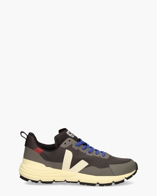 Sneakers voor heren van het bijzondere Franse merk VEJA. Dit lichtgewicht model Dekkan Ripstop DR1903361 heeft een upper van stof en kunststof gemaakt van 100% gerecycled materiaal. De binnenkant, met uitneembaar voetbed, is gemaakt van gerecycled polyester en het fair trade rubber van de 3, 5 cm hoge Vibramzool is gemaakt van rijstafval en 'wild' rubber afkomstig uit het Amazonegebied. De 'V' van VEJA in een gebroken witte tint prijkt aan beide kanten van de trainers. Het merklogo op de tong, zwarte sierlussen en rode veters maken dit toffe en eco-friendly model compleet. Kleur: khaki/zwart/off-white. (Kaki/ Pierre) ...