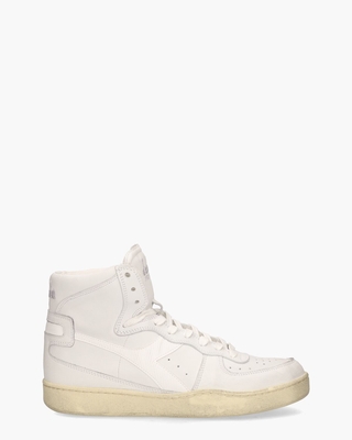 Hi-top sneakers voor heren Mi Basket Used 201.158569 uit de Heritage Collection van Diadora. Dit model, in vintage 80's basketball-stijl heeft een upper van zacht en soepel leer met een "used look" bewerking. De stoffen binnenzijde is voorzien van een uitneembaar voetbed. De perforaties en witte sidestripes, evenals de geborduurde branding op de hiel en de tong, geven dit paar sneakers precies de juiste oldskool vibe. De schacht heeft een hoogte van circa 11 cm en de rubberen zool is ook in een "used look" uitgevoerd. Kleur: wit. (White/White)
