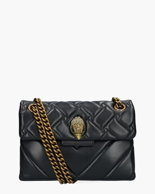 Schoudertas Mini Leather Kensington Bag 1470800109 uit de collectie van Kurt Geiger. Dit tasje is gemaakt van zacht zwart doorgestikt leer. Aan de binnenkant bestaat de bag uit 1 compartiment met daarin een steekvakje. Onder de flap sluit de tas met een magneetje. Het antiek zilveren eaglekopje is versierd met strass-steentjes. Een zilveren merklogo achterop de tas maakt dit toffe model compleet. De bijpassende antiek zilveren chain is in te stellen op handtas- of schouderlengte. Afmetingen: hoogte: 14 cm breedte: 20 cm diepte: 6 cm. Kleur: zwart. (Black) ...