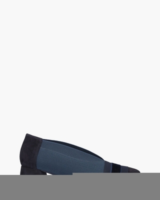 Mollie pumps voor dames van het Italiaanse merk Daniele Ancarani. Deze elegante pumps op een spitse leest combineren suède met elastisch materiaal in verschillende blauwtinten. De volledig leren binnenkant, inclusief het voetbed, zorgt voor een luxueus draagcomfort. De donkerblauwe suède blokhak van ongeveer 4, 5 cm hoog geeft een speelse touch en biedt dankzij de rubberen inzet extra grip en stabiliteit. Een perfecte keuze voor wie stijl en comfort wil combineren. Kleur: blauw. (Navy)