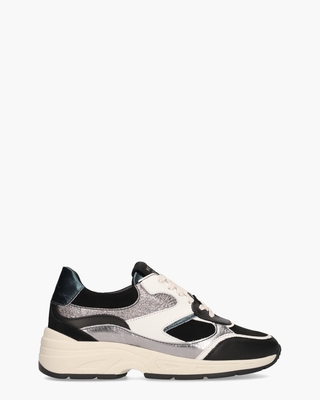 De Talla 03.04 sneakers van Piedi Nudi zijn een stijlvolle keuze voor dames. Deze H-fit sneakers combineren leer, suède en glittermateriaal in zilver, zwart en wit voor een unieke look. De groene metallic details zorgen voor een opvallend accent. Binnenin zijn de schoenen uitgevoerd in leer en voorzien van een uitneembaar voetbed voor extra comfort. Branding is zichtbaar op de tong en het hielstuk. De off-white en zwarte rubberen zool met profiel beschikt over een ingebouwde stabilizer aan de achterzijde. Gebroken witte katoenen veters maken deze schoenen compleet. Kleur: zwart/multi. ...