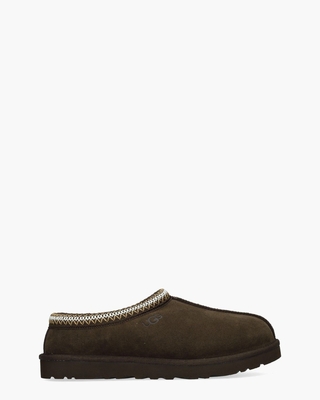 UGG tilt homewear naar een hoger niveau met deze Tasman II Slipper 1174671 in donkerbruin suède. Binnenin ervaar je het comfort van luxe materialen: een voering van 60% schapenvacht en 40% lyocell die je voeten omhult met warmte. De borduursels langs de rand en het kenmerkende logo geven de slof een herkenbare look. De 2, 5 cm hoge EVA-loopzool van gerecycled materiaal biedt demping en grip. Match met een zachte cashmere joggingbroek voor een stijlvolle indoor outfit. Kleur: donkerbruin. (Dusted Cocoa)