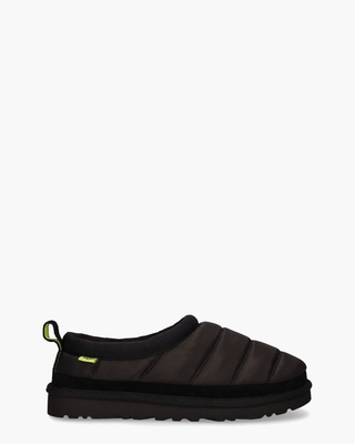 Puffy pantoffel voor heren Tasman LTA Slipper 1127735 uit de collectie van het label UGG. Deze zwarte herenpantoffels hebben een upper van 100% gerecyclede polyester- en textielvezels afgewerkt met suède details. De slides zijn gevoerd met lekkere zachte en warme schapenwol. De stoffen kraag is versierd met borduursels en aan de zijkant is het UGG-logo zichtbaar. De 2, 5 cm hoge lichtgewicht zool van dit model is gemaakt van rubber met een speciaal patroon voor een goede grip. De stoffen sierlus maakt de pantoffels compleet. Draag de sloffen (die je ook gewoon als schoenen kunt dragen) met blote voeten om optimaal te genieten van de warme UGG-pure wol. Kleur: zwart. (Black)