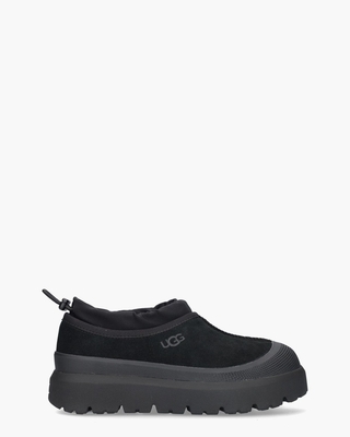 De Tasman Weather Hybrid Slipper 1144096 herenboot uit de collectie van UGG combineert weerbestendigheid met het vertrouwde UGG-comfort. Waterdicht suède, een warme UGGplush-voering en een stevige rubberen profielzool maken deze shoes voor buiten. De afsluitbare rand en elastische veters zorgen voor een perfecte pasvorm. De booties zijn afgewerkt met een subtiel merklogo opzij. Draag ze met een jeans of jogging voor een casual look. Kleur: zwart. (Black) ...