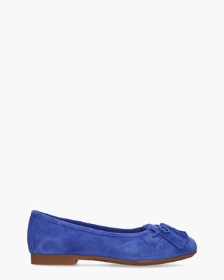 Ballerina's voor dames Temmi uit de collectie van Si. Deze loafers op een ronde leest hebben een bovenwerk van kobaltblauw. De binnenkant is in leer met een vast voetbed uitgevoerd. De elastische bewerking zorgt voor een goede pasvorm. De zool en het 1 cm hoge hakje zijn van rubber gemaakt. Het matching kobalt strikje en de franjes op de wreef maken de ballerina's compleet. Kleur: kobaltblauw. (Cobalt)