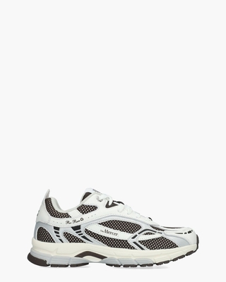 Streetstyle met een eco-friendly edge. Deze The Re-Run ME253013-800 damessneakers van Mercer hebben een bovenwerk van gerecycled leer en mesh in wit, zilver en donkerbruin voor een verfijnde mix. De gerecyclede polyester voering en het uitneembare voetbed zorgen voor optimaal draagcomfort. De ultralichte EVA-zool met driekleurige laagjes geeft een dynamisch effect en stevige grip. Details als branding, stoffen lusjes, witte katoenen veters en zilverkleurige eyelets benadrukken de sportieve esthetiek. Kies voor een casual look met een oversized trui en een satijnen broek. Kleur: donkerbruin/wit. (White/ Brown) Dit model valt kleiner uit.