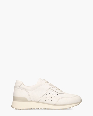 Sneakers voor dames Tylia van het merk Cypres. Dit sportieve model heeft een upper van wit generfd leer. De perforaties opzij en de gestikte afwerking geven de sneakers extra cachet. De gebroken witte rubberen runningzool heeft een lichtgrijze profiel onderzool. De schoenen hebben een leren binnenkant en een soft uitneembaar voetbed voor extra comfort. Details zoals off-white veters en een lichtgrijze kunststof stabilizer maken de sporty shoes compleet. Kleur: wit. (White)