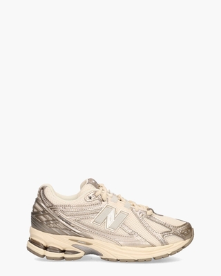 De U1906RCN van New Balance mixt sportieve heritage met een futuristische finish. Deze damessneaker is geà nspireerd op hardloopmodellen uit de jaren 2000, maar voelt dankzij de metallic accenten juist hypermodern aan. Het bovenwerk bestaat uit ademend mesh in een zachte creamkleur, gecombineerd met glanzende panelen in champagne en zilver voor een gelaagde en opvallende look. Het iconische 'N'-logo is uitgevoerd in ton-sur-ton tinten en geà ntegreerd in de zijkant. Comfort speelt zoals altijd een hoofdrol bij New Balance. De N-ergy zool en de ABZORB-tussenzool vangen schokken op en bieden optimale demping, terwijl het Stability Web in de middenvoet zorgt voor extra steun tijdens het lopen. De zachte Ortho Lite-binnenzool is uitneembaar. Crèmekleurige veters en perforaties maken dit model compleet. Draag de sneakers met een cargobroek, een zwierige rok of je favoriete denim: deze sneaker geeft elke outfit een sportieve edge met urban flair. Kleur: crème/champagne/zilver. (Arid Stone/ Perma... ...