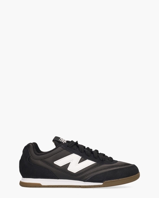 Sneakers voor dames URC42LB uit de RC42-collectie van New Balance. Dit minimalistische model heeft een bovenzijde van zwart synthetisch materiaal en suède. De binnenkant is in stof met een uitneembaar voetbed uitgevoerd. De witte 'N' van New Balance en de witte bewerking in de zool zorgen voor een contrasterende look. De rubberen 2 cm hoge bruine zool geeft de sneakers een retro tintje. Zwarte katoenen veters en een gestikte afwerking maken de trainers compleet. Kleur: zwart/wit. (Black/ White) Dit model valt kleiner uit.