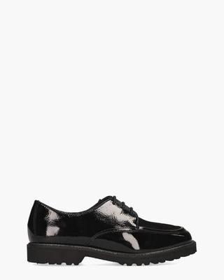 Veterschoenen voor dames 40910 uit de collectie van Sioux. Deze schoenen zijn gemaakt van zwart lakleer, wat zorgt voor een opvallende en luxueuze uitstraling. De binnenkant is volledig leergevoerd en voorzien van een uitneembaar voetbed voor extra comfort. Met suède en een mocassinstyle bewerking op het voorblad, rubberen profielzool en 3 cm rubberen hak met profiel bieden deze schoenen een elegante, maar toch eigentijdse casual look. Zwarte veters zorgen voor een bijpassende afwerking. Kleur: zwart. Gebruik voor laklederen schoenen of tassen altijd een  Lack Polish (https://www.vanarendonk.nl/collonil-lack-polish/) of  Lack Mousse (https://www.vanarendonk.nl/collonil-lack-mousse/) om het leer soepel te houden en zet lakschoenen in schoenspanners (https://www.vanarendonk.nl/nico-5212-ceder-spanner-flex-universal/) zodat er geen vuil in het lakleer kan dringen.