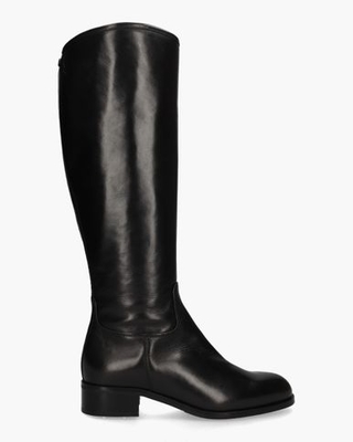 Lange boots voor dames 454A van het Italiaanse merk Nalini. Deze laarzen hebben een bovenzijde van glad en stevig zwart leer. De binnenkant is ook in leer uitgevoerd en voorzien van een vast voetbed. De leest is rond. De schacht heeft een hoogte van circa 39 cm en heeft over de gehele lengte een rits. De lage kunststof hak meet ongeveer 4cm. Een elastische inzet aan de bovenkant en een logobutton aan de achterzijde maken de boots compleet. Kleur: zwart. (Nero)