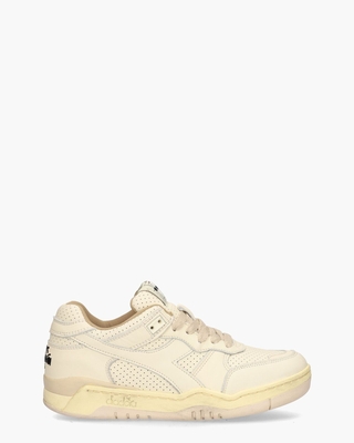 Low-top sneakers voor dames B.560 Apulia Used Italia 201.179235 uit de Heritage Collection van Diadora. Dit model in vintage 90's stijl is gemaakt van used leer voorzien van een stonewash en waxed treatment in off-white. De binnenzijde is in badstof en leer uitgevoerd en heeft een uitneembaar voetbed. De zwarte geborduurde branding en 1990 op het hielstuk geven dit paar sneakers precies de juiste oldskool vibe. Perforaties, beige veters, lichtroze rubberen details en een stoffen merklogo op de tong stylen de sneaks af. De zool is tot slot ook vintage bewerkt. Kleur: off-white. (Papyrus White) ...