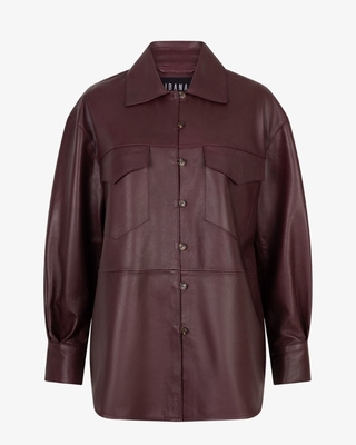 De Bodi damesblouse van Ibana brengt stoer en vrouwelijk perfect in balans. Gemaakt van soepel bordeauxrood leer met een subtiele glans, krijgt deze blouse een luxueuze uitstraling die meteen opvalt. De rechte fit, klassieke kraag en klepzakken op de borst geven het ontwerp een utility-touch, terwijl de doorknoopsluiting en gladde afwerking zorgen voor een cleane look. Dankzij het zachte materiaal voelt de blouse licht en comfortabel aan. Kleur: bordeauxrood. (Burgundy) Onderhoud: • Alleen door gespecialiseerde stomerij laten reinigen.