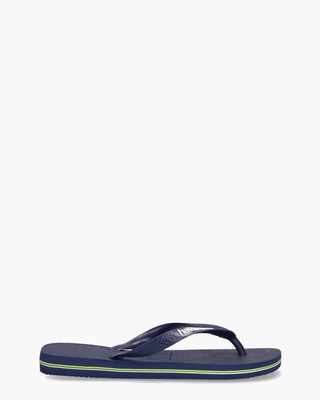 Slipper voor heren  Brasil Logo 4110850 van het merk Havaianas. Deze herenslipper is uitgevoerd in kunststof. De donkerblauwe straps bevatten het kenmerkende Brasil vlaggetjeslogo en in de rubberen loopzool zijn eveneens de Braziliaanse kleuren verwerkt. Kleur: donkerblauw. (Navy Blue) Havaianas werkt met dubbele maten: 39 = 38/39  40 = 39/40  41 = 40/41  42 = 41/42  43 = 42/43  44 = 43/44  45 = 44/45 en 46 = 45/46. De Braziliaanse maatvoering (als grootst vermeld in de slipper en op de doos) wordt hierbij aangehouden.
