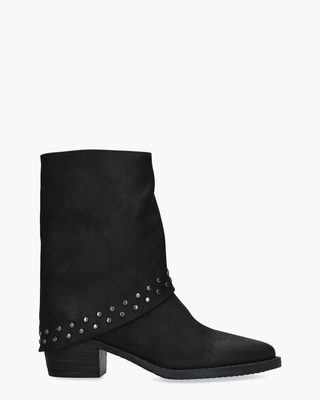 De Brenda25 damesboots van Miss Behave stralen robuustheid en karakter uit. Het zwarte licht gebrushte leer met studs aan de onderzijde van de schacht geeft deze laars een stoere en tegelijk verfijnde uitstraling. Dankzij de 18 cm hoge schacht en de blokhak van 5 cm ontstaat een krachtige look met een vrouwelijke touch. De leren voering en het vaste voetbed zorgen voor een comfortabel gevoel bij elke stap. Perfect om te dragen onder een rechte jeans en biker jacket. Kleur: zwart. (Nero)