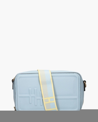 Dit lichtblauwe tasje BV253480 van Hispanitas valt op door z’n strakke vorm en luxe afwerking. Het gestructureerde imitatieleer heeft een zachte glans, terwijl het reliëflogo aan de voorkant en de metalen hardware zorgen voor een verfijnde uitstraling. De verstelbare en afneembare schouderband met opvallend colorblock-design in zachtgeel, lichtblauw en lichtgrijs maakt het geheel speels én praktisch. Binnenin vind je een ruim stoffen compartiment met een ritsvak en steekvak voor je essentials. De box bag sluit veilig met een rits rondom. Afmetingen: hoogte 13 cm, breedte 20 cm, diepte 7 cm. Kleur: lichtblauw. (Sky)