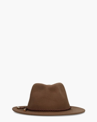 De Cassia dameshoed van House Of Ord - Cape Town brengt tijdloze klasse met een natuurlijke touch. De hoed is gemaakt van zacht, hoogwaardig wolvilt en afgewerkt met een gevlochten band. Dankzij de Comfy-Fit elastische band met clip pas je de maat eenvoudig aan. De hoed biedt bovendien UPF50+ zonbescherming, ideaal voor zonnige dagen met een herfstbries. Randbreedte: 6, 5 cm – Kroonhoogte: 9, 5 cm – Omtrek: 58 cm. Materiaal: 100% wolvilt. Kleur: bruin. (Nutmeg)