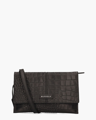 Zwarte clutch met afneembaar polsbandje van het Nederlandse merk Burkely. Deze Cool Colbie Envelope Clutch 1000851.29.00 is gemaakt van zwart gewaxt leer met verschillende printjes. De tas sluit met een drukker en een rits aan de bovenkant. Het stoffen hoofdvak heeft een ritsvak en ruimte voor 3 pasjes. De schouderband is afneembaar en in lengte verstelbaar. Het merklogo is tot slot in zilveren letters aan de voorzijde in het leer gestanst en zilverkleurige hardware maakt de tas compleet. Afmetingen: hoogte: 18 cm breedte: 25 cm diepte: 2 cm. Kleur: zwart. (Black)