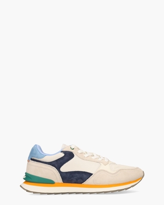 Multicolor sneakers voor heren, model Cusco, uit de collectie van HOFF. Dit ontwerp combineert leer, nylon scubastof en suède in een kleurenmix van off-white, donkerblauw en lichtblauw, afgewerkt met oranje sierstiksels. De voering van synthetische stof en het uitneembare memory foam-voetbed zorgen voor een uitstekende pasvorm en comfort. Met branding op de tong en op de zeegroene kunststof stabilizer straalt deze sneaker een herkenbare HOFF-stijl uit. De driekleurige rubberen EVA-zool heeft een unieke print aan de onderzijde en biedt stevige grip dankzij het kartelprofiel. Witte veters, groene eyelets en gebroken witte stoffen lusjes maken de sneakers compleet. Kleur: multi. (Multi)