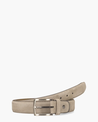 Stijlvolle riem De Belter 01.38/CBM-10001-34-01 voor heren uit de collectie van het Nederlandse merk Van Bommel. Deze riem is gemaakt van beige suède en heeft een natuurlijk leren voering aan de binnenkant. De riem is 3, 5 cm breed. Een zilveren gesp en een subtiel metalen Van Bommel-button maken de riem helemaal af. Kleur: beige. (Light Brown) Riemen van het merk Van Bommel hebben een standaardlengte van 115 cm en zijn op maat te maken door middel van een schroefsysteem. Mix en match de ceintuur met de bijpassende Van Bommel veterschoenen Raffa 02.03 ().
