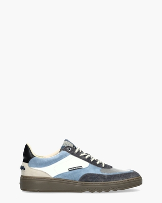 Met zijn rijke materiaalkeuze en subtiele details is de Kupster 05.18/SFM-10143-31-01 een echte Floris van Bommel klassieker. Het bovenwerk van deze herensneaker bestaat uit leer, suède, mesh en tweedstof in verschillende blauwtinten, beige, donkergrijs en wit. Het blauwe rubberen karteltje op de hiel geeft de sneaker de herkenbare FVB-look. De leren voering en het uitneembare voetbed staan garant voor comfort. Opvallende merkdetails, tweekleurige veters en de sportieve zool met gekartelde inzet maken het ontwerp op een normale G½-leest af. Draag dit model met een donkere jeans en een casual blazer voor een casual look. Kleur: multi. (Dark Grey) Floris Van Bommel schoenen vallen over het algemeen iets ruimer uit.