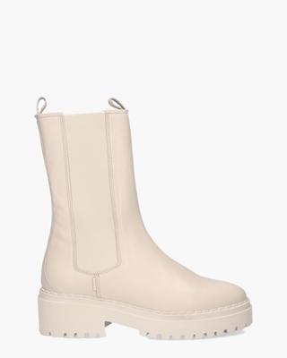 Roomwitte Chelseaboots Fae Adams 21043100-22DL voor dames uit de collectie van het label NUBIKK. Dit halfhoge model is handgemaakt en heeft een upper van glad leer aan beide zijkanten afgewerkt met elastisch materiaal. Aan de binnenkant zijn de laarsjes ook in leer uitgevoerd en beschikken ze over een zacht uitneembaar voetbed. De rubberen chunky 5 cm hoge hak en 2, 5 cm EVA-zool hebben een grof profiel en zijn lichtgewicht.   De schacht heeft een hoogte van 20 cm. Een subtiel merklogo opzij en lusjes aan de bovenkant ronden de casual stijl af. Kleur: roomwit. (Desert) Witte en crèmekleurige boots zoals deze zijn super hip dit seizoen. Meer hierover lees je in onze blog over witte laarzen (https://www.vanarendonk.nl/blog/witte-laarzen-voor-winterse-dagen/).