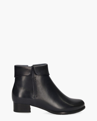 Enkellaarzen G&G152 V2 voor dames uit de collectie van Maripé. Gemaakt van donkerblauw zacht leer stralen deze laarzen klassieke stijl uit. De binnenkant is gevoerd met stof voor extra comfort, terwijl het sportieve omslagdetail een nonchalante look toevoegt. Met een blokhak van ongeveer 3, 5 cm bieden deze laarsjes een prettige balans tussen stijl en draagbaarheid. De rits aan de zijkant van de 12 cm hoge schacht maakt het aan- en uittrekken eenvoudig. Sierstiksels maken de schoenen af. Kleur: donkerblauw. (Blu)