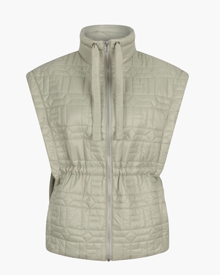 Bodywarmer voor dames Gina Vest 1-B van Goosecraft. Dit lichtgewicht mouwloze vest is gemaakt van doorgestikt nylon, waardoor hij stijlvol en comfortabel is. Met het handige trekkoord kun je de kraag aanpassen. Het vest sluit met een rits, en heeft een elastische bewerking in de taille. Kleur: lichtgroen. (Sage Green) Onderhoud: • Binnenstebuiten wassen met soortgelijke kleuren op 30 graden. • Niet in de droogtrommel drogen. • Niet strijken.