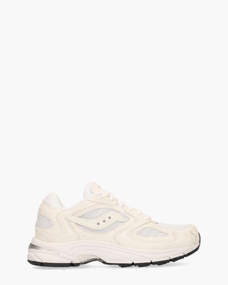 Deze damessneakers, model Grid Jazz 9 S70898-9 van het Amerikaanse merk Saucony, zijn een perfecte mix van retro en modern. De combinatie van off-white suède en wit ademend mesh zorgt voor een comfortabele pasvorm en een frisse look. Het herkenbare Saucony-logo prijkt op de zijkant, terwijl subtiele merkdetails op de tong en hiel de authentieke stijl benadrukken. De binnenkant, gevoerd met zachte stof en voorzien van een uitneembaar voetbed, biedt langdurig draagcomfort. De witte/zwarte rubberen zool met Grid-demping zorgt voor uitstekende schokabsorptie en extra ondersteuning. Witte ronde veters en stoffen veterlusjes geven deze sneaker een stijlvolle finishing touch. Kleur: wit/off-white. (White/Off-White)