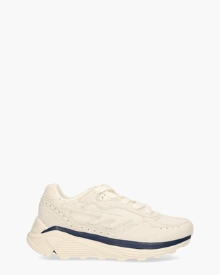 Sneakers voor heren HTS Shadow RG van het sportslabel HI-TEC. Dit re-design van het originele icoon Silver Shadow uit 1981 heeft een bovenwerk van off-white suède en mesh. De luchtige mesh voering is voorzien van een uitneembaar voetbed. De sneaker heeft een innovatieve tussenzool en chunky Vibram buitenzool die de natuurlijke beweging van de voet ondersteunt. Branding is zichtbaar op de tong en de hielcap. Perforaties, off-white veters en een donkerblauw accent in de zool maken de supersnelle sneaks compleet. Kleur: off-white/donkerblauw. (Gardenia/ Gibratar)