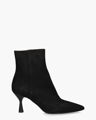 Handgemaakte shoot voor dames Ide D250501 uit de collectie van het Italiaanse merk Attilio Giusti Leombruni - AGL. Deze opvallende damesschoen heeft een upper van zacht en soepel zwart kalfsleer. De binnenkant is volledig in leer uitgevoerd. De laarsjes sluiten met een rits opzij. Het spitse neusje geeft de shooties een stoere, beetje punky vibe. De zwarte kunststof queenie hak met een hoogte van 8 cm maakt de fashionable stijl compleet. Kleur: zwart.