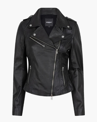 De Julia Biker 2-A van Goosecraft is een stoer zwart damesjack. De jas is uitgevoerd in zwart leer met een zachte structuur en heeft een binnenkant van polyester. De jas met een fitted pasvorm sluit met een asymmetrische rits. Verder heeft het bikerjack drie ritsen op het voorpand. Drukkers op de kraag en ritsjes bij de mouwen maken de jas af. Kleur: zwart. (Black) Onderhoud: • Alleen door gespecialiseerde stomerij laten reinigen.