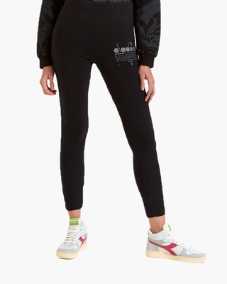 Zwarte high waist leggings voor dames van het merk Diadora Sport. Dit model Leggings Manifesto 502.178224 sluit strak aan en heeft een elastische band in de taille. Grijze Diadora-logo's op de voor- en achterkant maken de slim fit stretch pants compleet. Samenstelling: 96% organisch katoen, 4% elastaan. Kleur: zwart. (Black) Combineer de leggings met het bijpassende Diadora Sport T-Shirt SS Manifesto () shirt voor een totale work-out look. Onderhoud: • Binnenstebuiten wassen met soortgelijke kleuren op 30 graden. • Niet in de droogtrommel drogen. • Binnenstebuiten strijken en motief niet strijken.