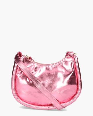 Leola Metallic crossbody bag uit de collectie van het merk DWARS label. Dit toffe ontwerp is vervaardigd van metallic leer in een roze tint. De binnenkant is in stof uitgevoerd en bestaat uit 1 compartiment. De tas sluit met een rits. De goudkleurige hardware voegt een vleugje elegantie toe. De verstelbare schouderband zorgt voor optimaal draagcomfort, zodat je de tas kunt aanpassen aan jouw voorkeur. Een merklogo voorop maakt de tas compleet. Afmetingen: hoogte: 14, 5 cm breedte: 20 cm diepte: 5 cm. Kleur: roze. (Pink)