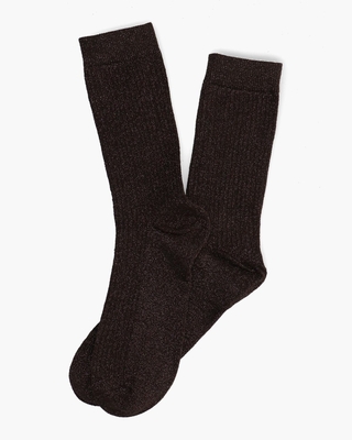 Deze lange gestreepte glittersokken Long Stripes Glitter van Pinned By K geven elke outfit direct meer karakter. De subtiele glans en het speelse streepmotief maken ze perfect voor zowel alledaagse combinaties als feestelijke momenten. Ideaal om zichtbaar te dragen voor een modieuze finishing touch. Samenstelling: 65% katoen, 28% polyamide, 4% lurex, 2% elastaan. Kleur: donkerbruin. (Dark Brown)
