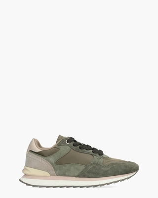 Deze HOFF Los Angeles damessneaker staat voor moderne streetstyle met een verfijnde knipoog naar de jaren ’80 runner. Het bovenwerk bestaat uit een combinatie van suède, nylon en leer in groene, beige en nude tinten. De zachte stoffen voering en het uitneembare memory foam voetbed zorgen voor optimaal comfort, ook tijdens lange dagen. De witte/lichtroze lichtgewicht zool met zwarte gekatelde onderzool biedt grip en stabiliteit, terwijl de donkergroene veters, sierstiksels, lichtroze veteroogjes en merklogo’s op tong en stabilizer de finishing touch geven. Draag deze sneakers met denim  en een oversized knit voor een laidback weekendstijl. Kleur: groen. (Green)