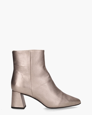 Enkellaarzen voor dames Lugano uit de collectie van het Nederlandse merk DWRS Label. Deze boots met een puntige neus zijn vervaardigd van goud metallic leer. De binnenzijde van de laarsjes is bekleed met leer en beschikt over een comfortabel vast voetbed. De schachthoogte meet ongeveer 13, 5 centimeter. De blokhak heeft een hoogte van 6 centimeter. De stijlvolle enkelbooties worden compleet gemaakt door een zijrits. Kleur: goud metallic. (Metallic Smoke)