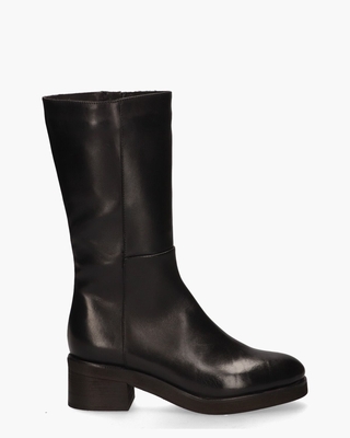 Boots voor dames M34 van het merk Walk In The Park. Dit laarsje heeft een upper van zwart glad leer. De binnenkant is ook in leer uitgevoerd. De schacht is ongeveer 27 cm hoog en is aan de binnenkant over de gehele lengte voorzien van een rits. De laarzen hebben een ronde leest en de hakhoogte bedraagt circa 5 cm. Kleur: zwart.