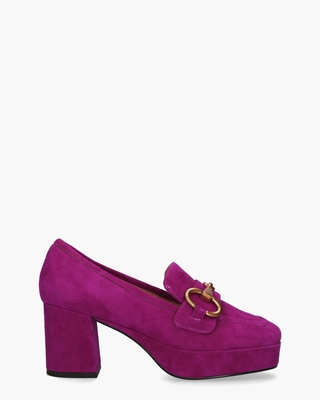 Loafers voor dames Mojave 542P30VK uit de collectie van het Spaanse merk Bibi Lou. Deze instapper heeft een suède bovenwerk in een felroze tint. Het gouden bit over de wreef geeft dit model een classic look. Het afgeronde carréneusje is echt van nu. De binnenzijde en het vaste voetbed zijn van leer gemaakt. De stevige blokhak meet 7 cm en het plateau onder de voorvoet is ongeveer 2 cm hoog. Kleur: felroze. (Morado)