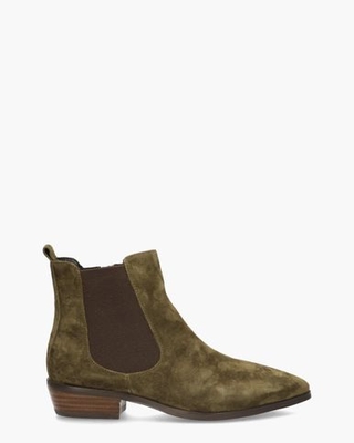 Chelseaboots voor dames Najla uit de collectie van het merk Di Lauro. Deze laarsjes hebben een upper van suède in een groene tint. De binnenkant is in leer uitgevoerd. De elastische inzet aan de buitenkant en de rits aan de binnenzijde zorgen voor een makkelijke instap. De leest is spits. De schacht is ongeveer 12 cm hoog en de hak heeft een hoogte van 3, 5 cm. Een sierlus bij de hiel maakt de booties af. Kleur: groen. (Dark Green)