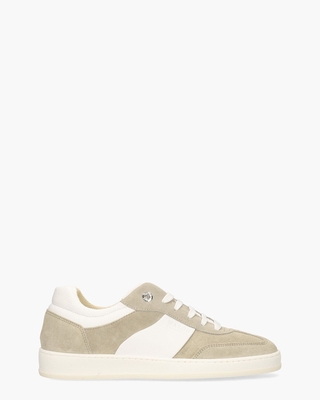 Sneakers in vintage indoor sports stijl voor heren van het Italiaanse merk Mason Garments. Deze handgemaakte sneakers Napoli Tradizionale 11B hebben een bovenwerk van beige suède en wit gestructureerd leer. De binnenzijde, uitgevoerd in zacht meshmateriaal, biedt optimaal comfort. De ergonomische, uitneembare inlegzool van schuim, bekleed met leer, voegt een luxueus gevoel en extra ondersteuning toe. Zilveren logo-eyelets trekken direct de aandacht en versterken de luxe uitstraling. Subtiele branding op de tong en opzij geeft de sneaks een herkenbare finishing touch. De witte rubberen zool, circa 3, 5 cm dik, is voorzien van een crèmekleurige onderzool. En dankzij de sachetto-techniek, waarbij het leer uit één stuk is gesneden, hebben deze sneakers een uitzonderlijk fijne pasvorm. Kleur: beige. (Beige)